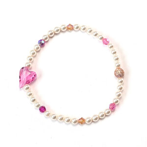 Armband mit weißen Crystal Pearls und schrägem Kristallherz