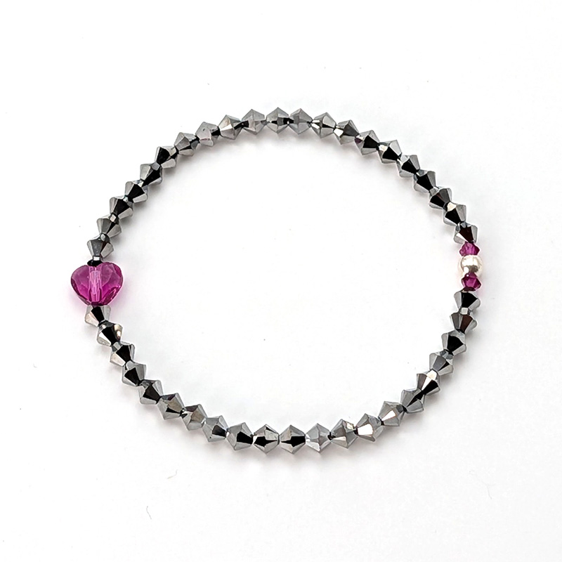 Armband Swarovski Herz Fuchsia mit anthrazit Kristallen