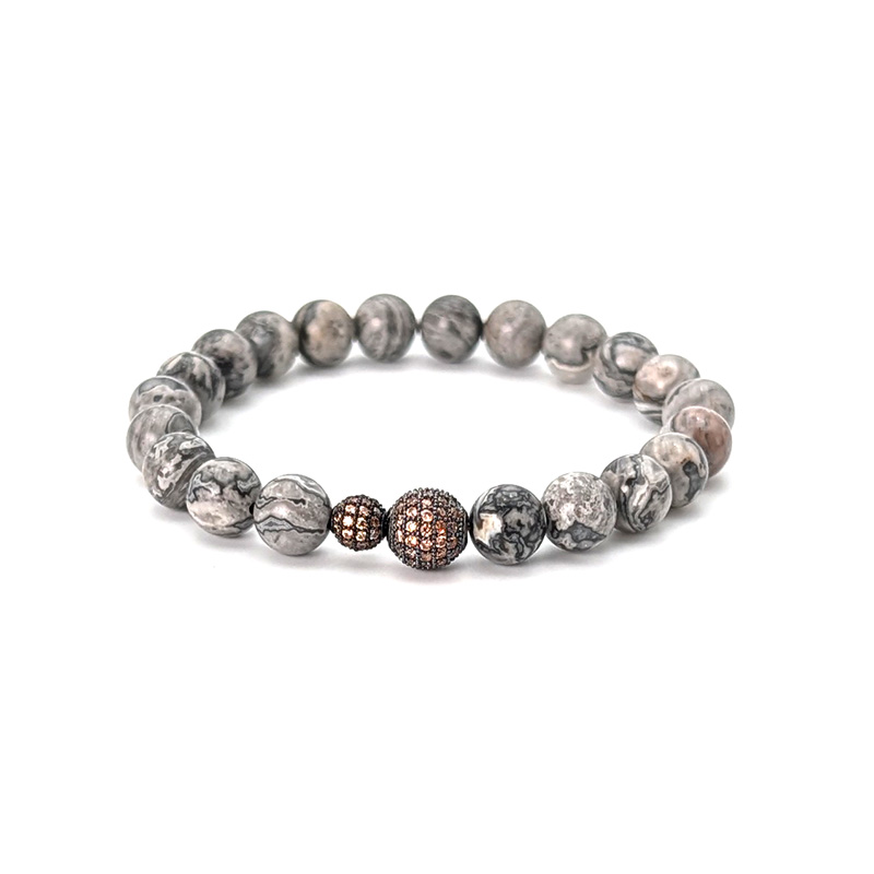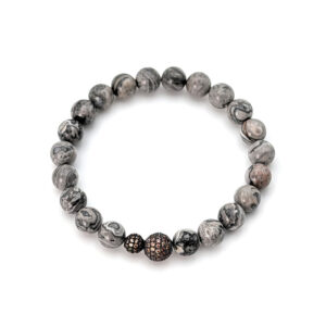 Als edler Blickfang setzen zwei Pavé-Kugeln, besetzt mit funkelnden Zirkonia-Steinchen, glamouröse Akzente und sorgen für ein dezentes, hochwertiges Funkeln. Das Zusammenspiel aus natürlichem Stein und strahlenden Details macht dieses Armband besonders vielseitig: feminin, stilvoll und dennoch ausdrucksstark.